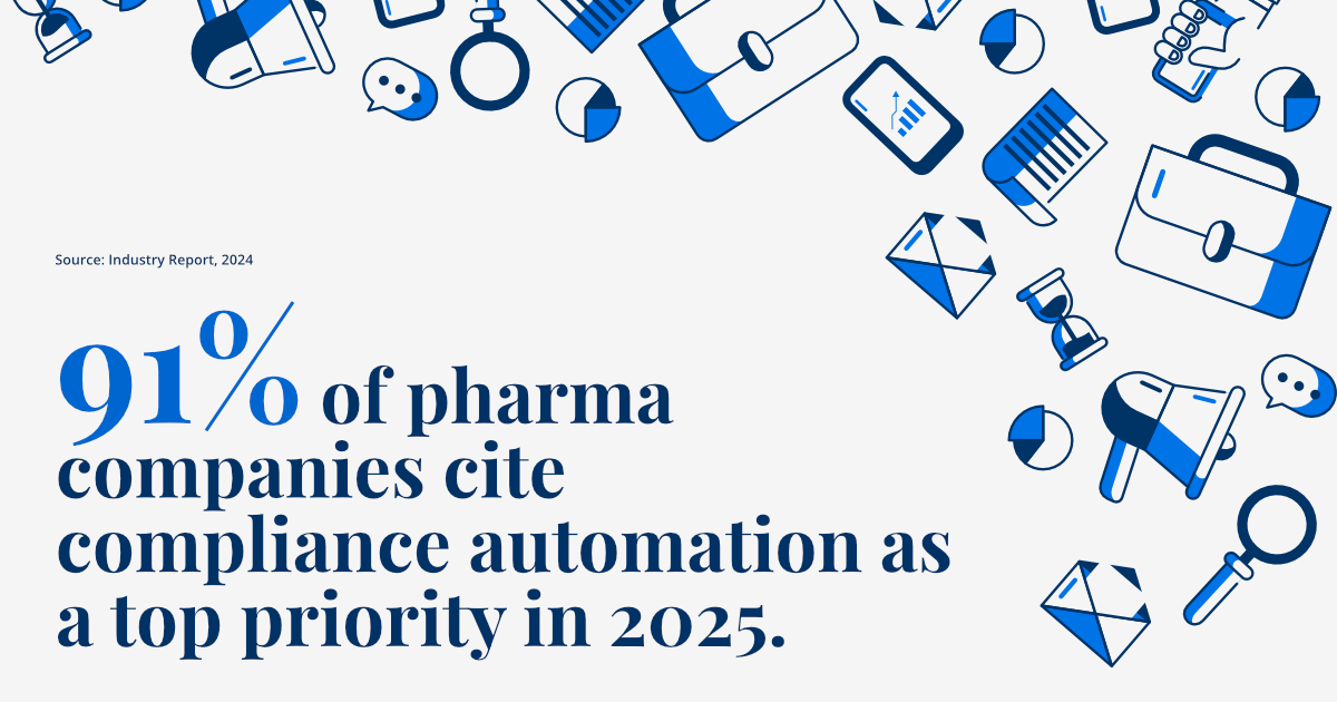 The pharmaceutical industry is at a crossroads. As regulatory environments grow more complex, pharmaceutical companies are increasingly moving away from traditional methods and switching to AI-powered vendor audits. This shift is driven by the need for greater speed, accuracy, and confidence in meeting global standards. Currently, compliance automation has become a top priority, with 91% of pharma companies citing it as a major goal for 2025.